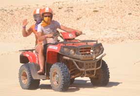 Der kleine Looser der für alles zu haben ist, was Spaß macht, hier mit meiner Frau auf den Cab Verden bei einer Quadtour durch die Dünen.